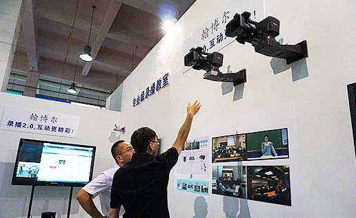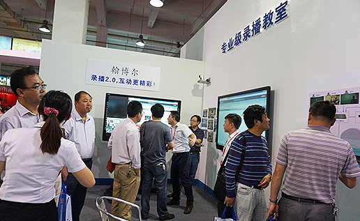 展會(huì)現(xiàn)場(chǎng),翰博爾以全方位的教育資源管理平臺(tái)CMS2.0為基礎(chǔ),結(jié)合3機(jī)位-5機(jī)位的錄播教室,一方面演示翰博爾錄播系統(tǒng)實(shí)現(xiàn)近景、全景、教師PPT的實(shí)時(shí)切換;另一方面,通過(guò)網(wǎng)絡(luò)將現(xiàn)場(chǎng)場(chǎng)景實(shí)時(shí)交互,即使是站在遠(yuǎn)處或背面的觀眾也可以通過(guò)屏幕,看清整個(gè)課堂細(xì)節(jié)。整套演示方案將硬件與平臺(tái)完美對(duì)接,靈活高效又兼顧效益與成本,集高畫(huà)質(zhì)、高品質(zhì)、便利性和互動(dòng)性于一身,吸引了眾多觀眾駐足咨詢(xún),交流溝通。