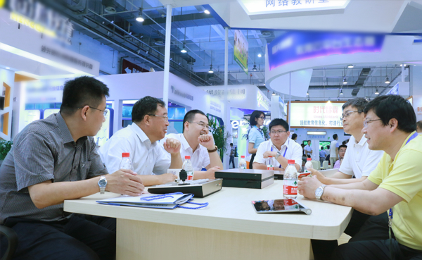 展會期間,青島市教育局局長及其它領導一行人蒞臨翰博爾展位參觀指導,不僅認真傾聽了展會現場的產品講解,還向工作人員詳細了解未來教室和網絡教研室的建設方案及應用。各位領導對翰博爾的產品創新和技術創新給予高度認可。