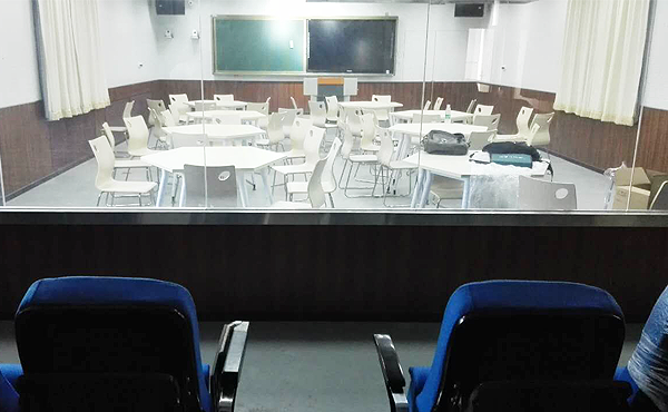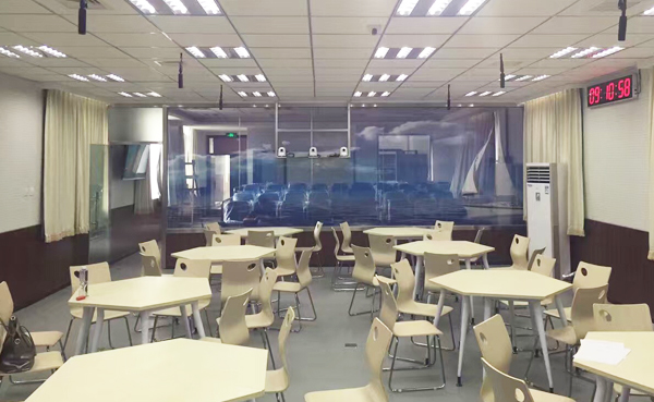 在教室布局上,教師觀摩室由一道單面玻璃透視窗口與教學區域隔開。這樣的設置既無損聽課教師完整地觀摩教學實況,又避免了對主講老師和學生的干擾,為課程錄制創造了一個真實的氛圍。