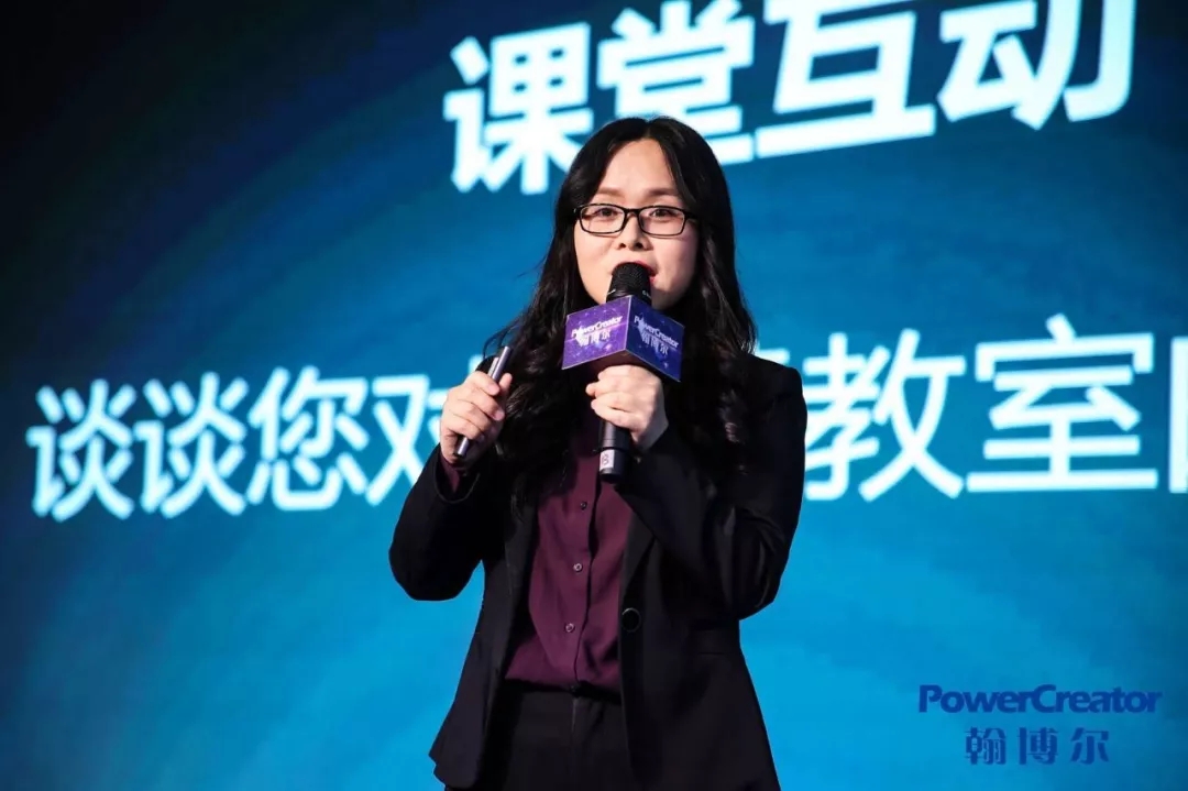 (翰博爾產品經理李師介紹“常態化智慧教室解決方案”。)