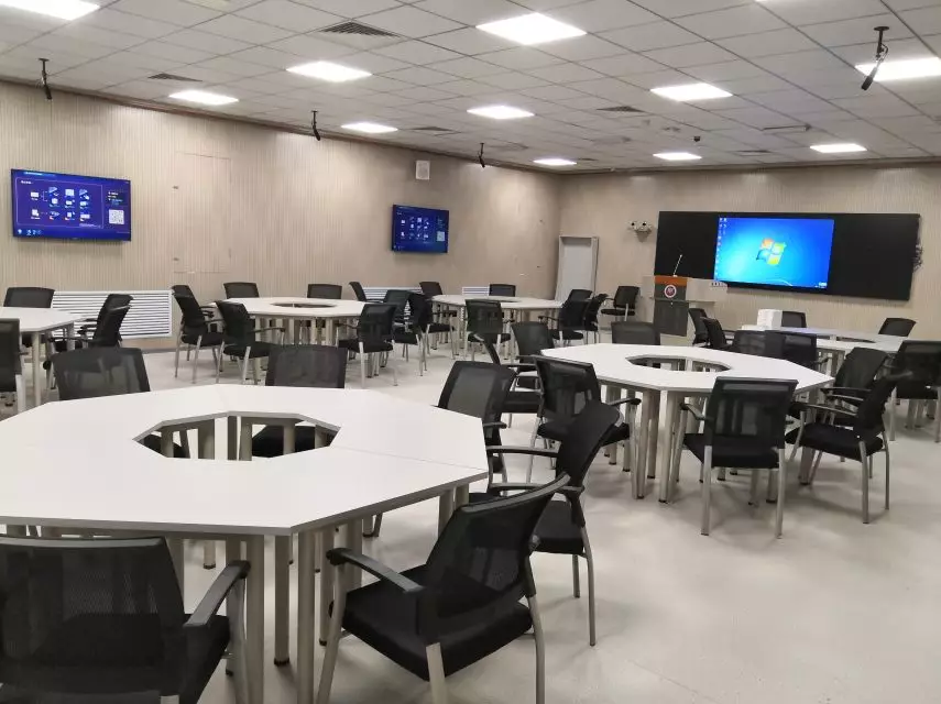 創新的教室布局為學生提供更為開放舒適的環境,形象化、立體化表達成為可能;無線投屏系統、智慧課堂小程序系統,實現課堂互動教學,有問有答、有討有論,師生間零距離多途徑信息傳導;學情分析系統實現了實時統計學生的關注度、參與度的學情分析,為學校管理人員提供課堂教學過程評價依據,內涵式發展。