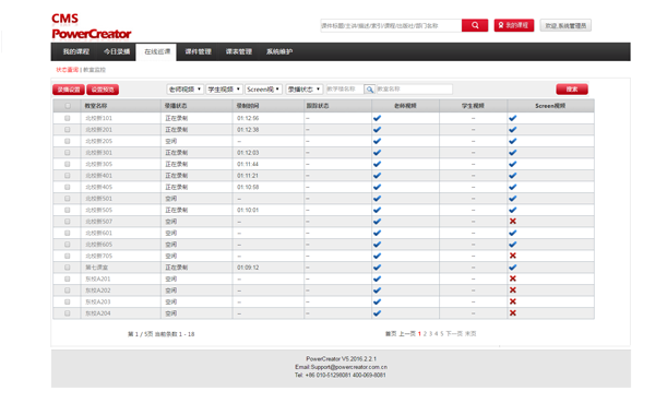 自動高清錄制實現教師、板書的高清視頻自動跟蹤采集,音頻采集,教師電腦屏幕截取,教師板書視頻/計算機畫面智能導播并進行電影模式的課件錄制,同時還可將以上信號源自動傳送至課件實時錄制系統進行錄制,通過課堂直播系統在局域網、互聯網上直播,為遠端用戶提供在線實時學習的平臺。