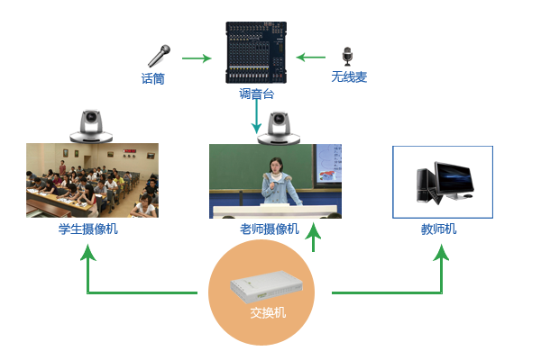 零操作:設備簡練,前端只有攝像機和編碼器,教師上課直接點擊電源開關便可實現課程的錄制,維護簡單。